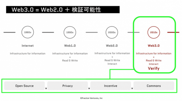 つまり、Web3.0を端的にいうならば、「検証可能なインターネットとそれによって実現するコラボレーションの活性化」と言えます。